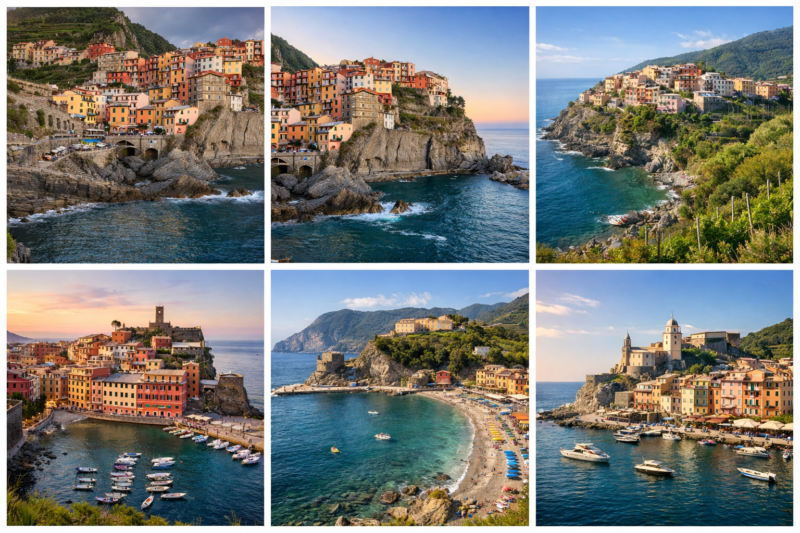 Și acum, despre cele cinci localități care alcătuiesc Cinque Terre – atât de apropiate între ele, și totuși atât de diferite în spirit și în felul în care se lasă descoperite.