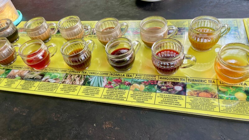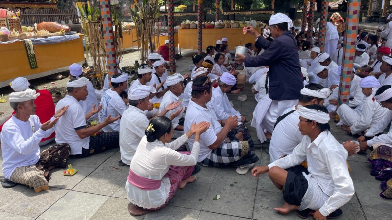 Aproape toate templele au aceeași aură, acelasi ritual in urma caruia fumul si mirosul de tămâie si frangipani se raspandesc pe sute de metri jur imprejur. Ofrande de toate felurile si culorile: galbenele “Marigold”, flori de iasomie “Melati”, mini-banane, fructul sarpelui, rambutan. In cosulete, ghirlande, manunchiuri.