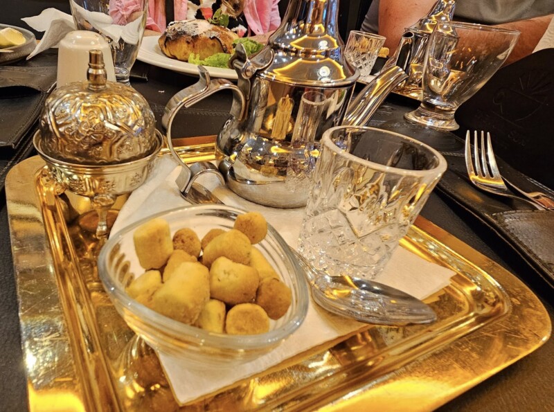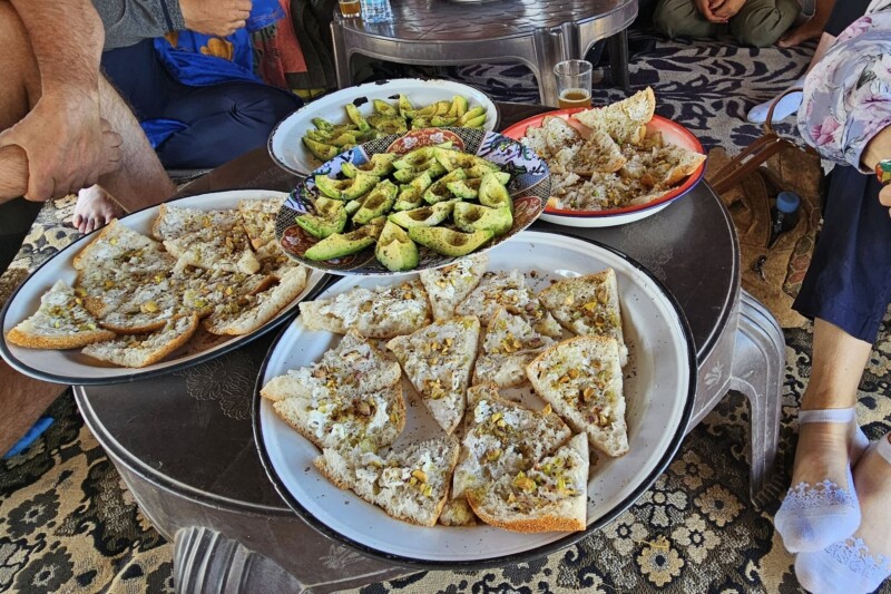 Produse de panificație și prăjituri tradiționale: Pâine de casă, mekharka (prăjituri din făină de grâu și unt), gazelle (delicate fursecuri cu migdale) și altele, toate pregătite în stil tradițional.