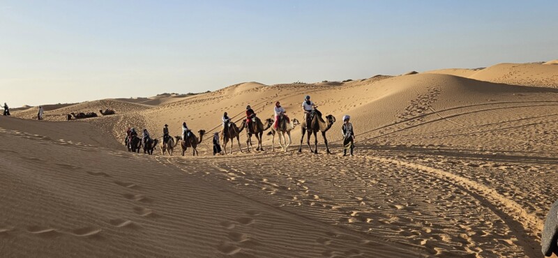 • excursie in Sahara, prin dune, cu dromaderii. Fiecare va avea dromaderul lui, iar la 6-7 persoane este un localnic, conducator de grup
