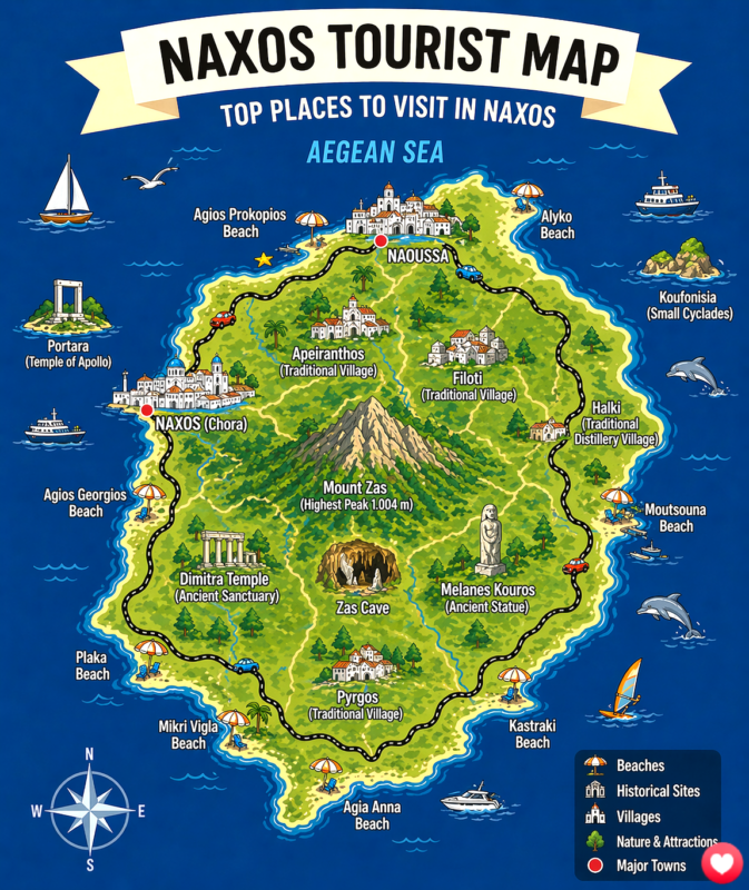 Naxos – o insulă verde, o poveste albastră! Cu peisaje luxuriante, livezi de măslini, munți impunători și plaje de vis, Naxos este o oază de natură și tradiție.