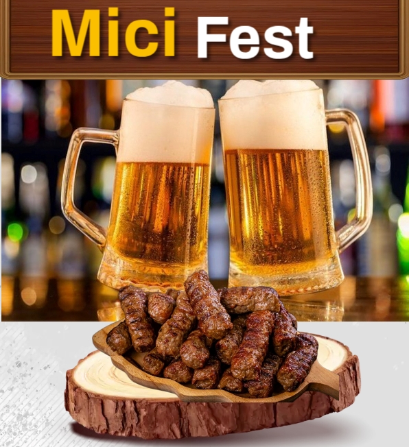 • prânz festiv de 1 Mai – “Mici Fest”: 3 mici la grătar cu cartofi aurii, muștar, pâine, bere + ciorbă de fasole