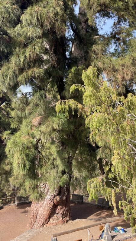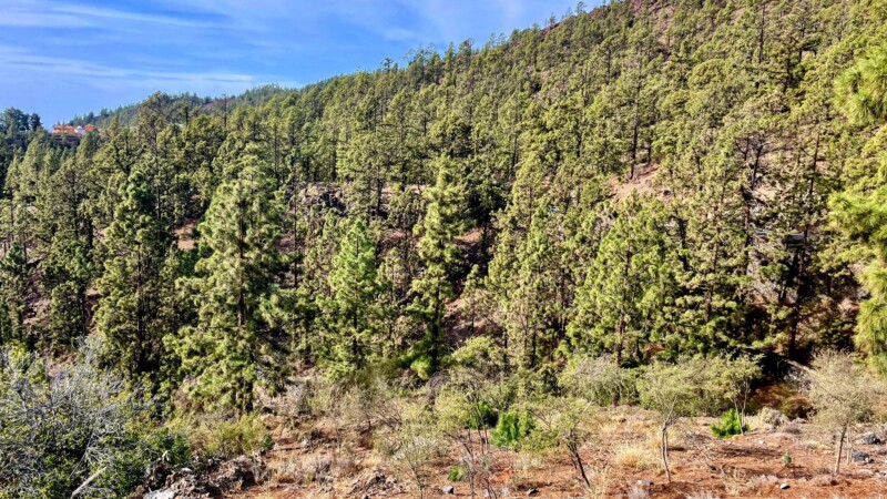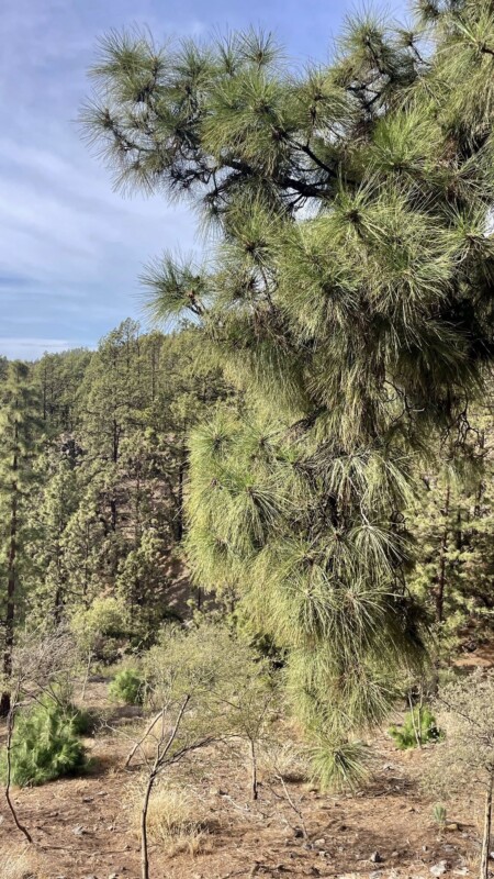 La marginea parcului isi fac prezenta mai intai timid, apoi tot mai des, fabulosii pini canarieni. Contrastul intre nuantele inchise ale zgurei si verdele crud al pinilor canarieni da un efect vizual exceptional. Nu te mai poti satura din privit.