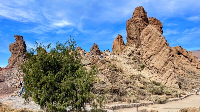 Toti cei 5 milioane de oameni ce viziteaza anual Teide ajung fara exceptie la Roques de Garcia - cele mai faimoase formațiuni stâncoase din parc, sculptate de erupții și eroziune.