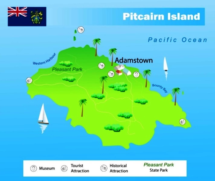 Singura așezare de pe insulă este **Adamstown**, numită după John Adams. Practic, întreaga populație a insulei trăiește aici.