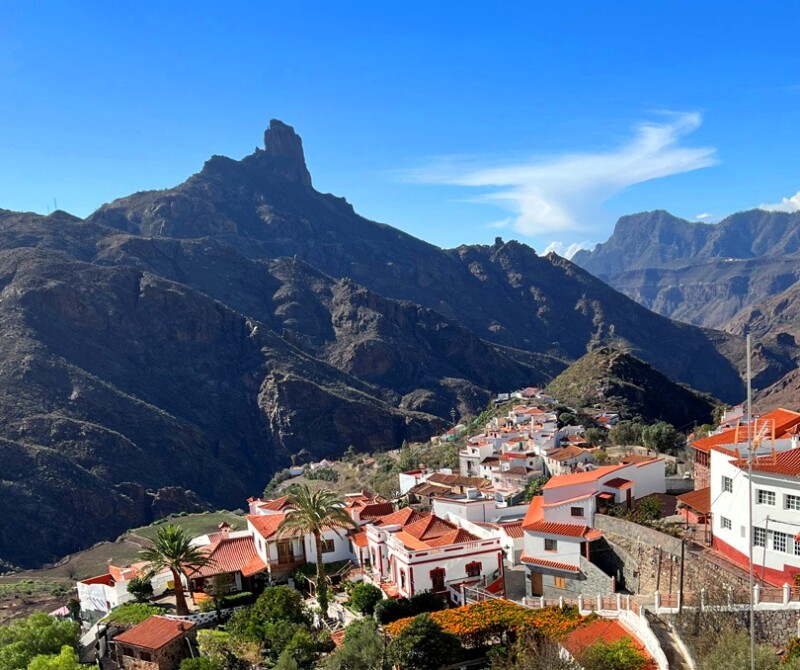 Deasupra munților se ridică unul dintre cele mai emblematice simboluri ale insulei: Roque Nublo. Acest monolit vulcanic impresionant, înalt de aproximativ 80 de metri, domină peisajul central al insulei și este vizibil de la zeci de kilometri distanță. În trecut, pentru populațiile aborigene ale insulei – cunoscute sub numele de canarii sau guanși – locul era considerat sacru și era folosit pentru ritualuri religioase.