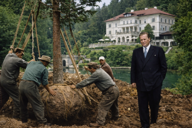au început să aducă copaci maturi**, deja crescuți, transportați din alte zone, și să-i replanteze în jurul vilei.